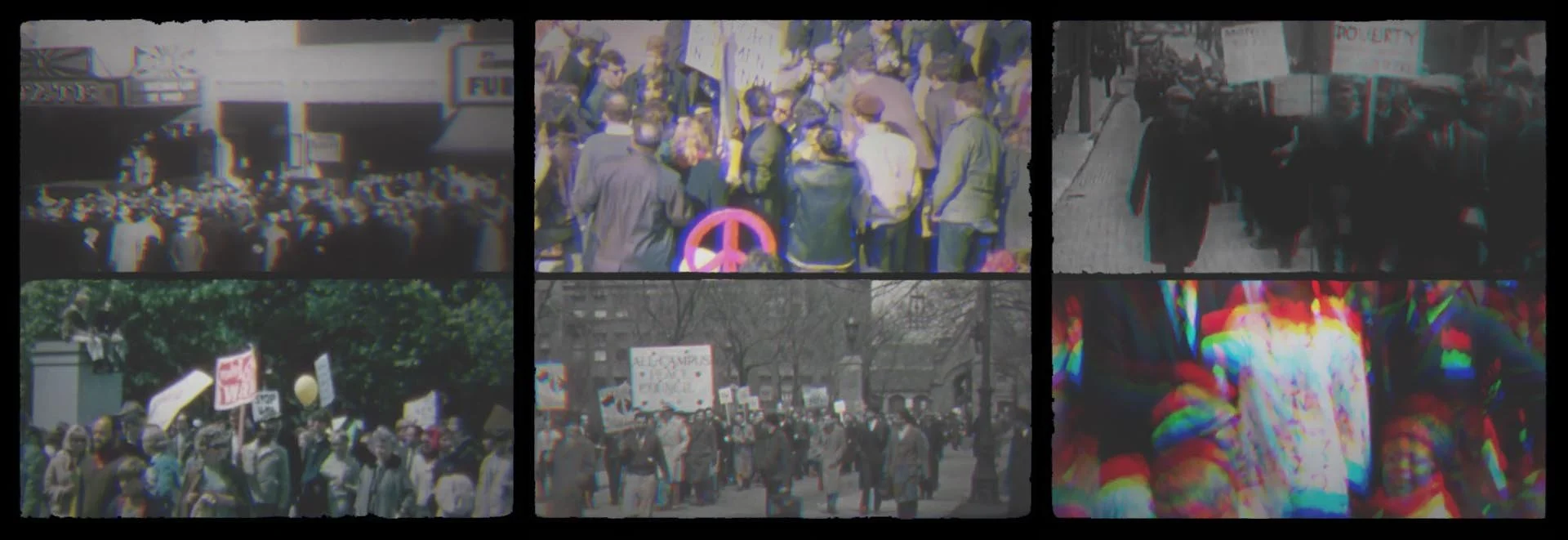 Can we think of ways to make this a triptych presentation using three squares? Whether that means making a fabric mask that creates a dark bezel on your existing screen or hanging three white squares, I’d like to stick to the original format of the film. The worst case scenario is displaying this like a normal film, which worked at Frameline (click HERE to see three screens during the day and HERE to see a bit of it at night)