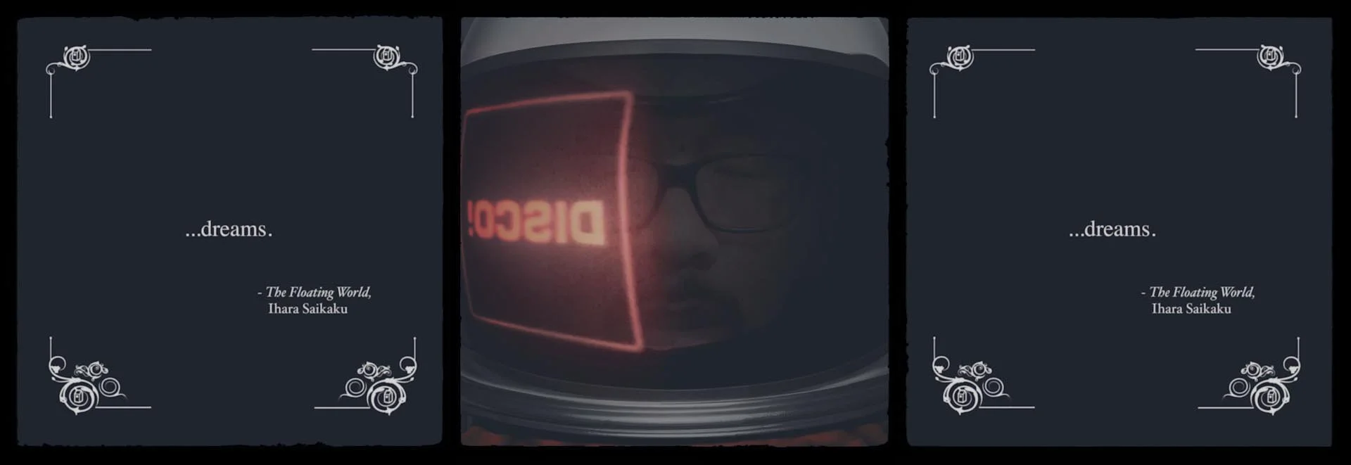 As you can see, it’s not just the flowery square corners that I’d have to adhere to, but a lot of the text I’d formatted for these 1:1 screens would have to be re-imagined. And the toughest thing about this shot? My face. Revealing anything beyond the frame reveals either lights, cables, flags, you name it. This whole film was shot in my tiny SF apartment and I used the 1:1 frame to my advantage.
